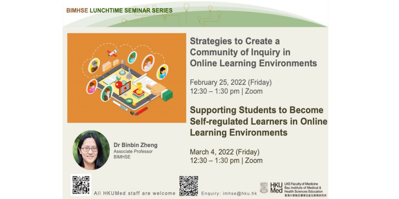 Online learning has created great challenges to students because of the increased autonomy and responsibility demanded of them. In addition, the physical absence of instructors and peers could lead to students’ decreased motivation in learning, lack of belonging, and sense of isolation. To succeed in online learning, students need to be self-regulated learners who can actively plan, control, and manage their learning actions. This seminar will focus on discussing instructional scaffoldings that could support students’ development of self-regulated learning strategies, such as goal setting, environmental structuring, task strategies, time management, help seeking, and self-evaluation.